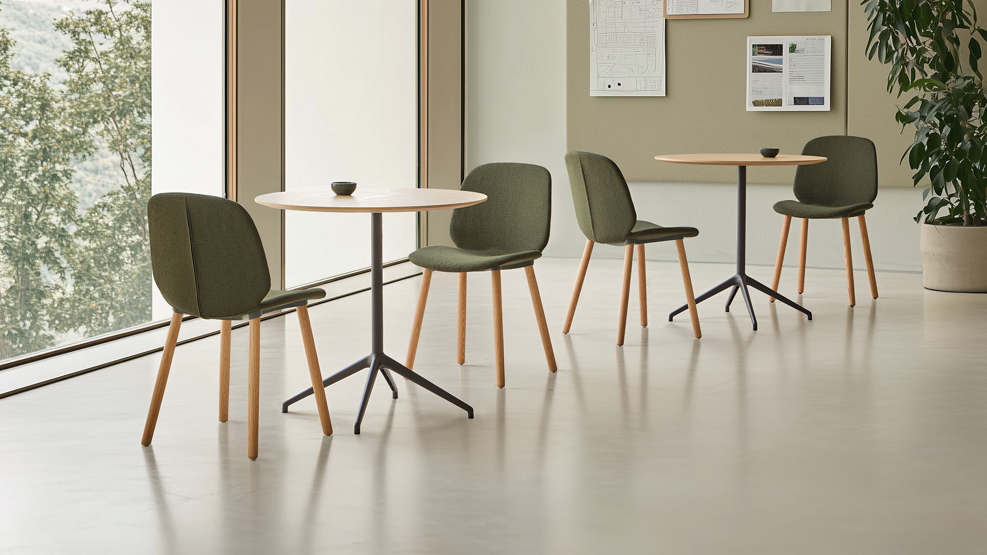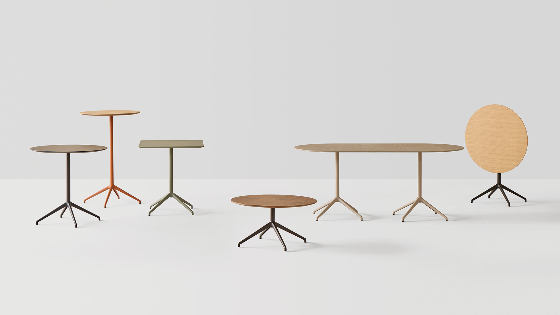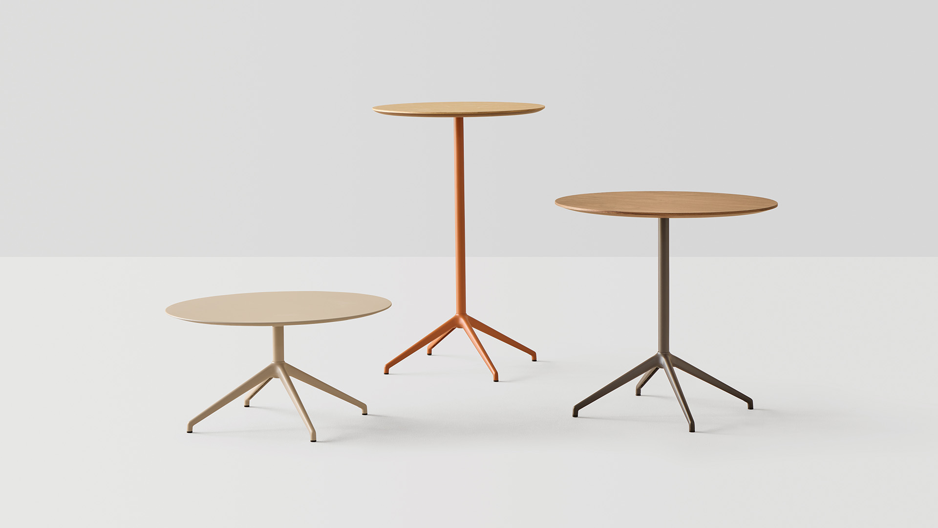 The BARLIS tables are characterized by their lightweight four-spoke aluminum base available in 3 heights and in a wide range of colours. The bases can be combined with round and square tops available in all the top materials and colours of our top range. There are versions with fixed or flip tops. The tables with HPL tops are also suitable for outdoor use.