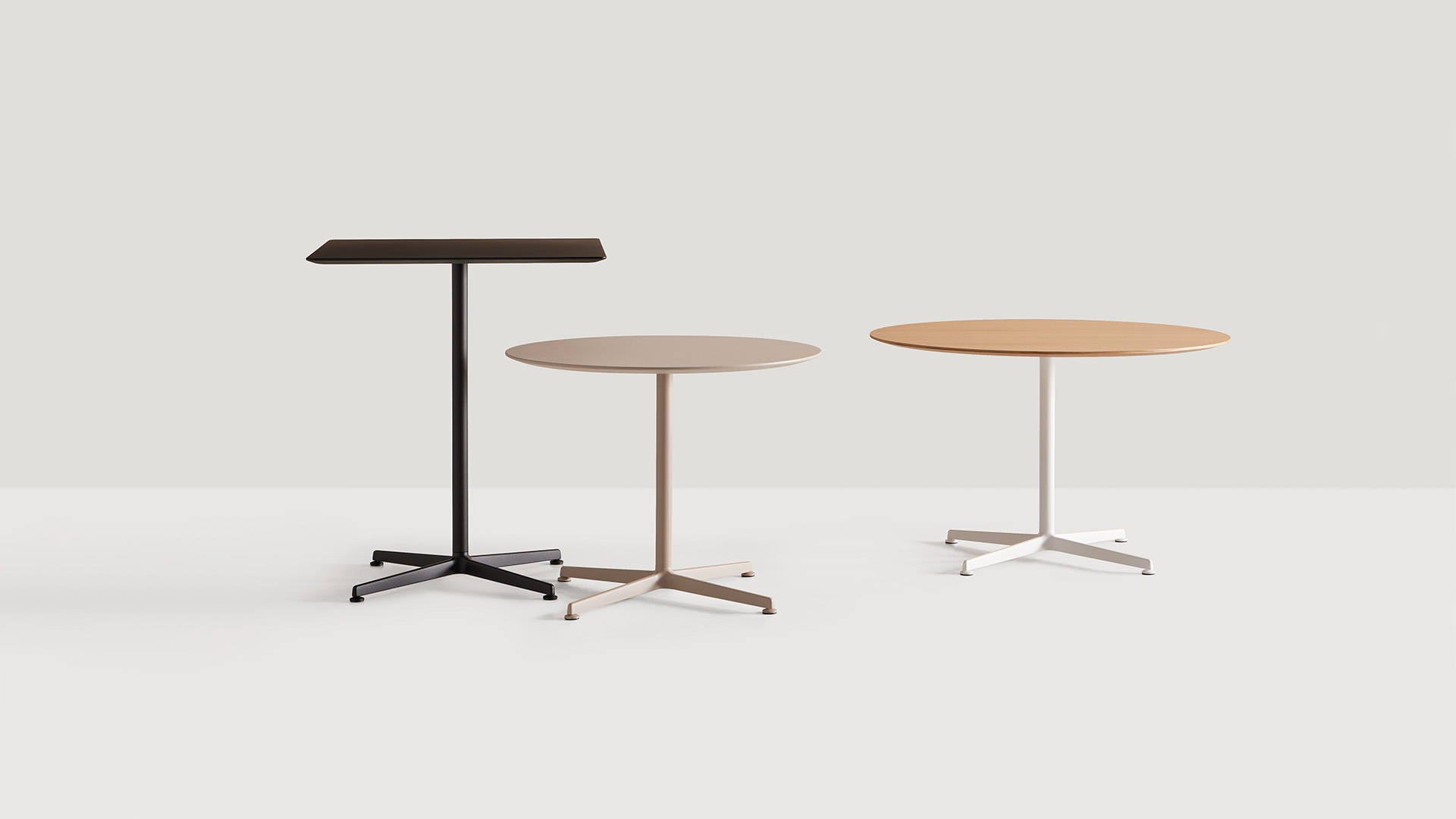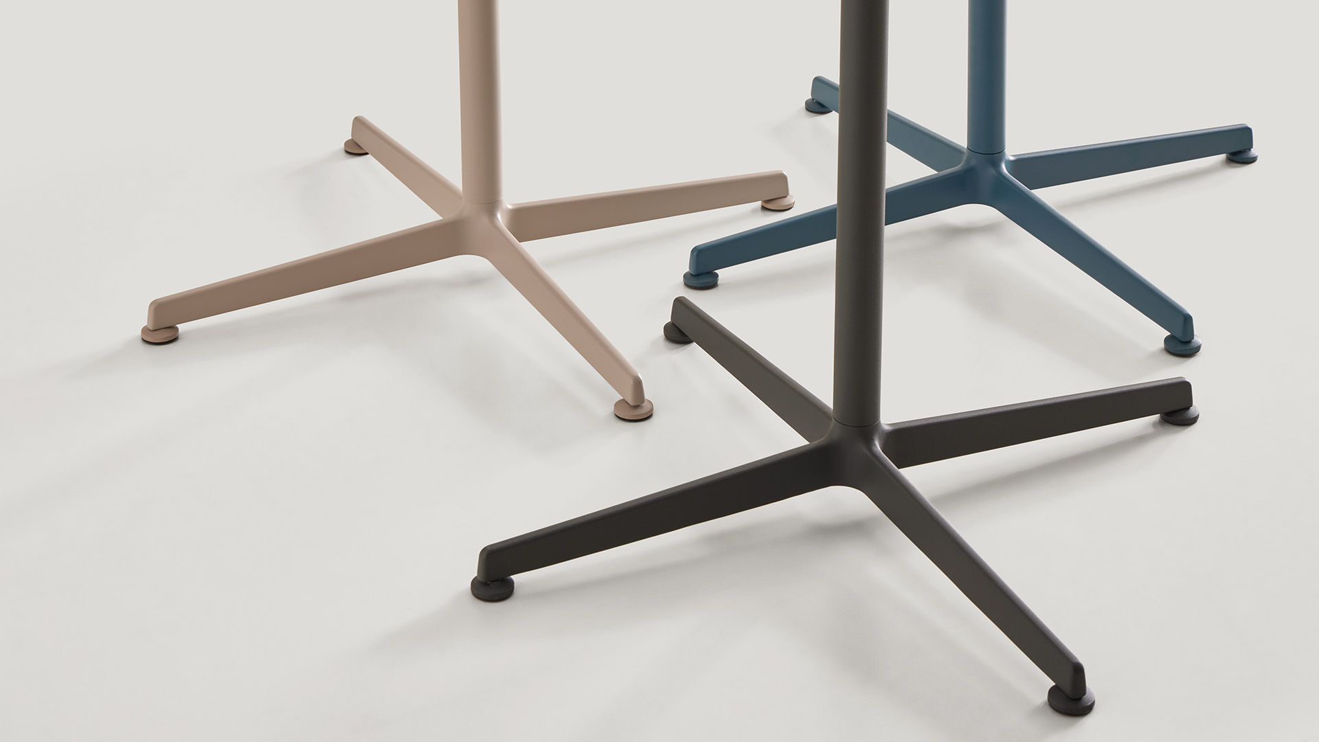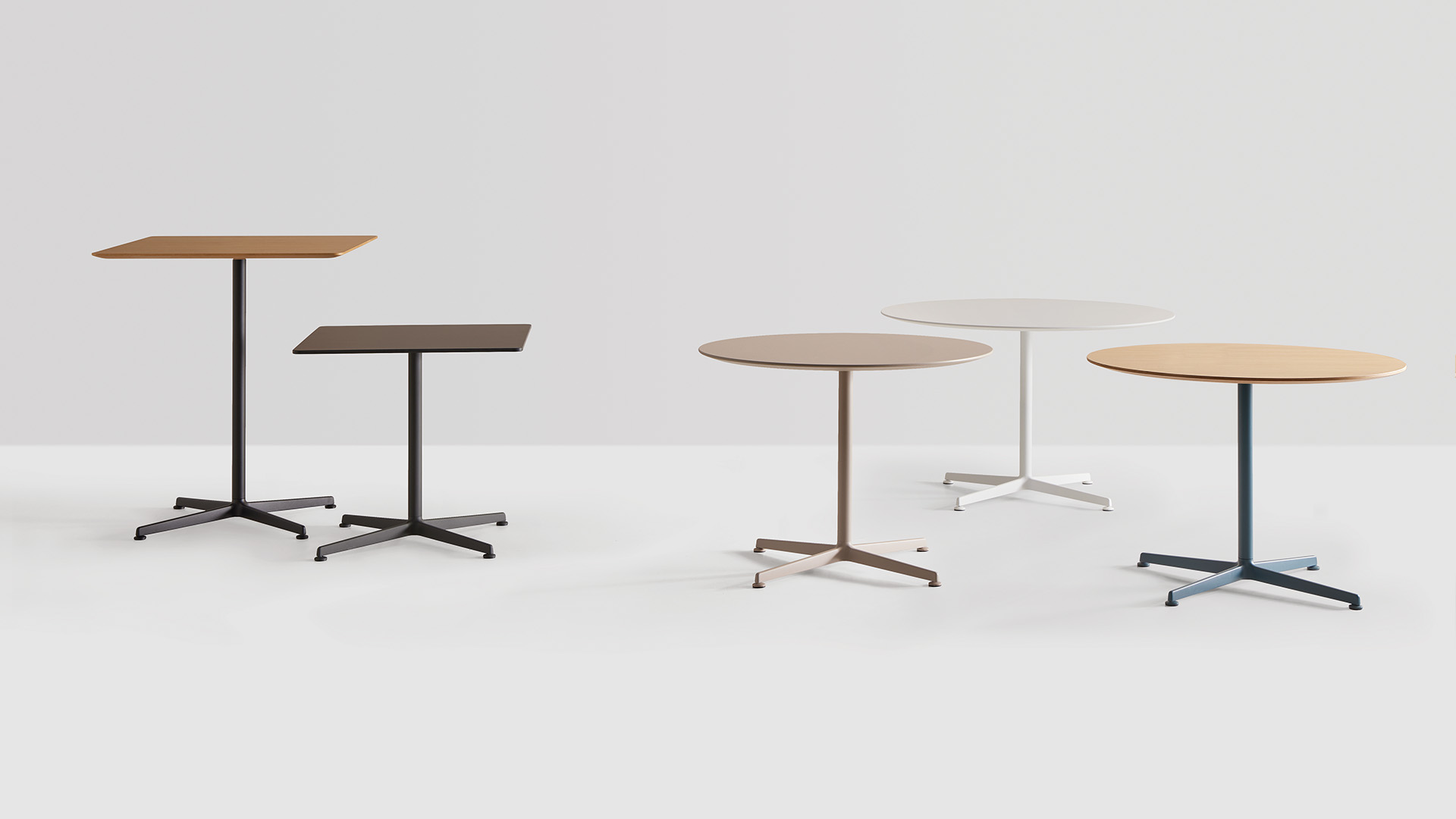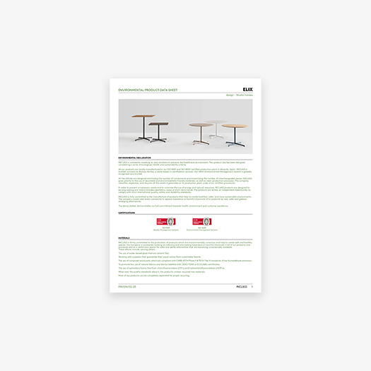 ELIX is a collection of versatile tables that stand out by its timeless and essential design. The collection is characterized by an elegant and functional base with four aluminum spokes that allows multiple tables to be configured. The tables are available in three heights with round or square tops in different sizes and materials. Both the tops and the bases, are available in a wide range of finishes that allow multiple combinations facilitating its integration in multiple meeting, hospitality or domestic spaces.