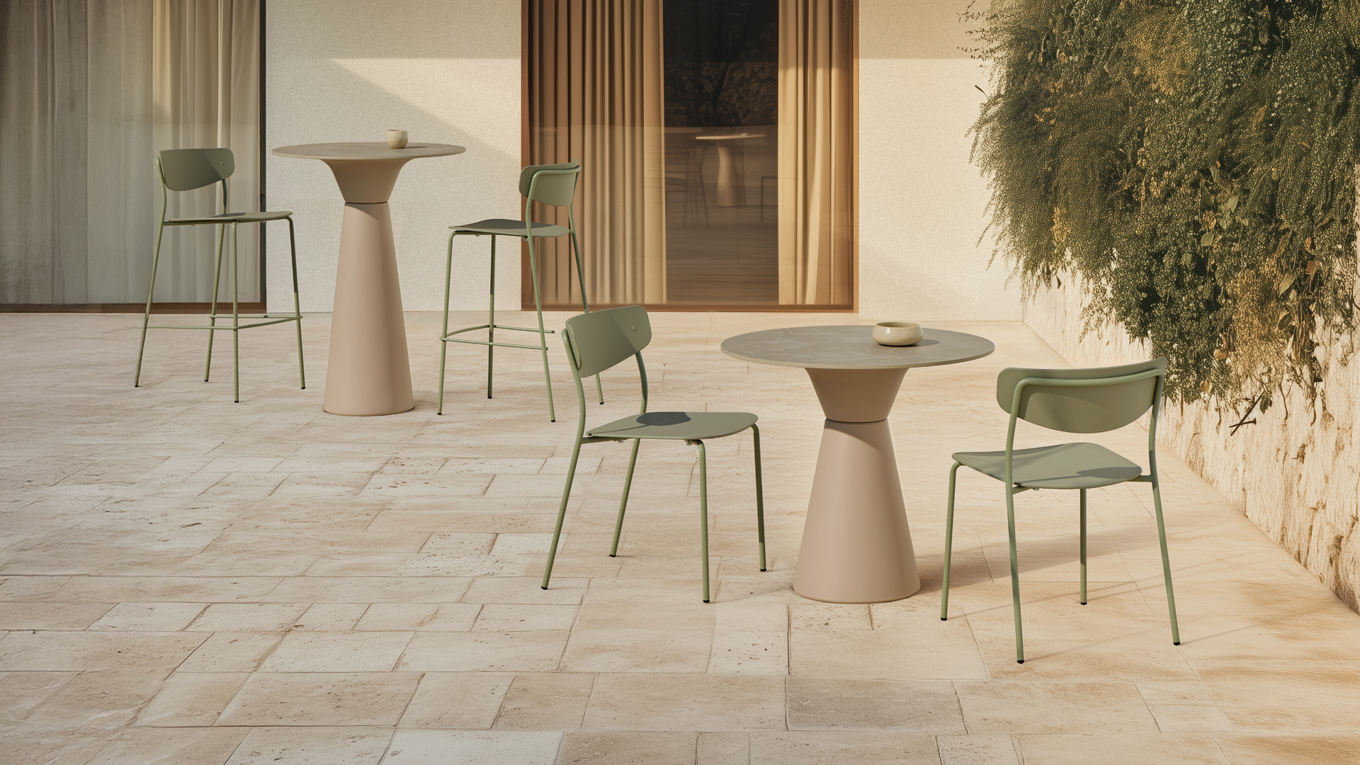 A selection of pieces from our most iconic collections, designed to transform any outdoor space. Illuminated by the Mediterranean light, each piece in this selection blends contemporary design with the quality of carefully chosen materials, ensuring durability against the demands of outdoor environments. A selection of timeless pieces, crafted to enhance modern outdoor settings such as hotels, cafés, residences, and other communal spaces.