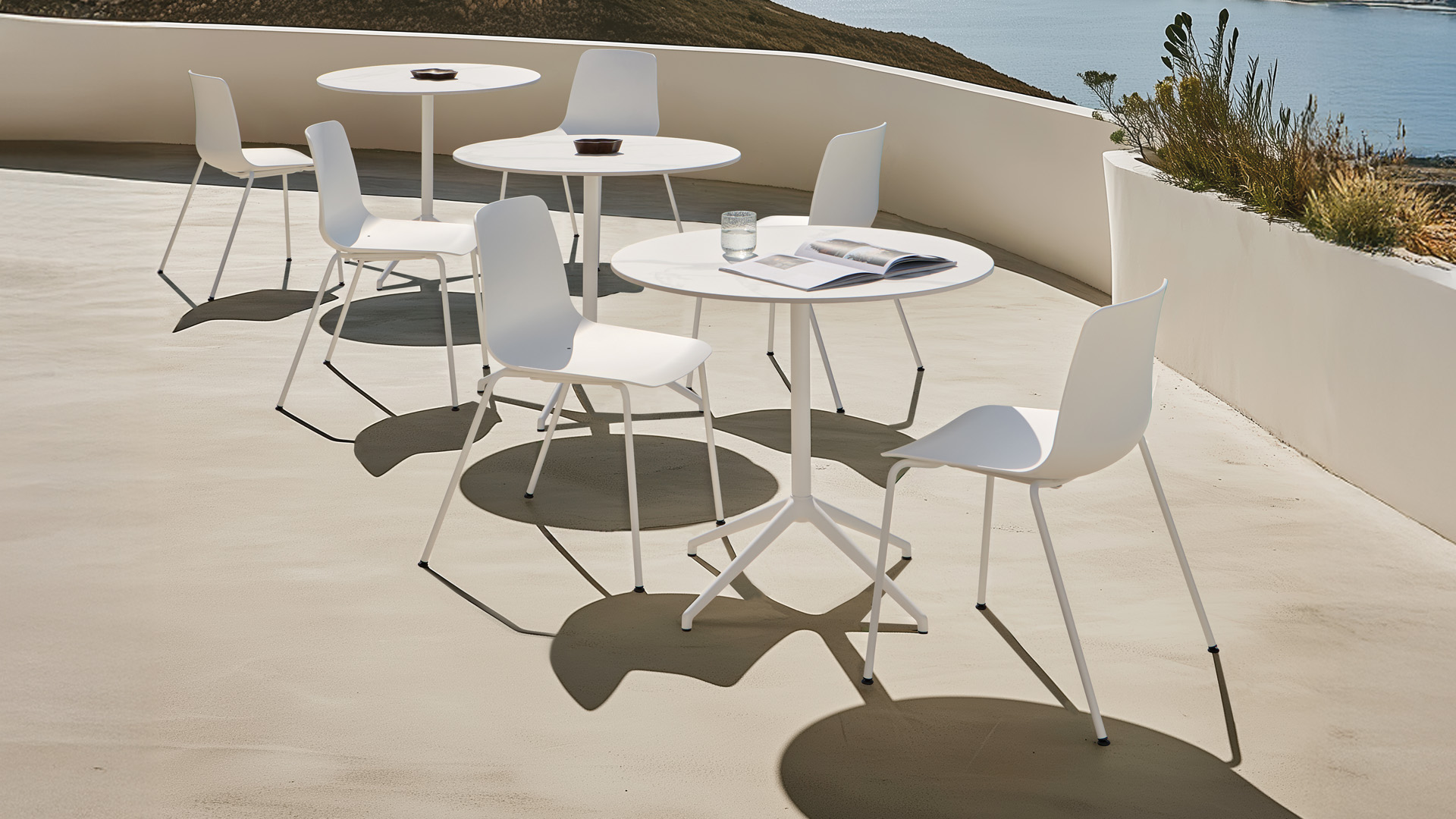 A selection of pieces from our most iconic collections, designed to transform any outdoor space. Illuminated by the Mediterranean light, each piece in this selection blends contemporary design with the quality of carefully chosen materials, ensuring durability against the demands of outdoor environments. A selection of timeless pieces, crafted to enhance modern outdoor settings such as hotels, cafés, residences, and other communal spaces.