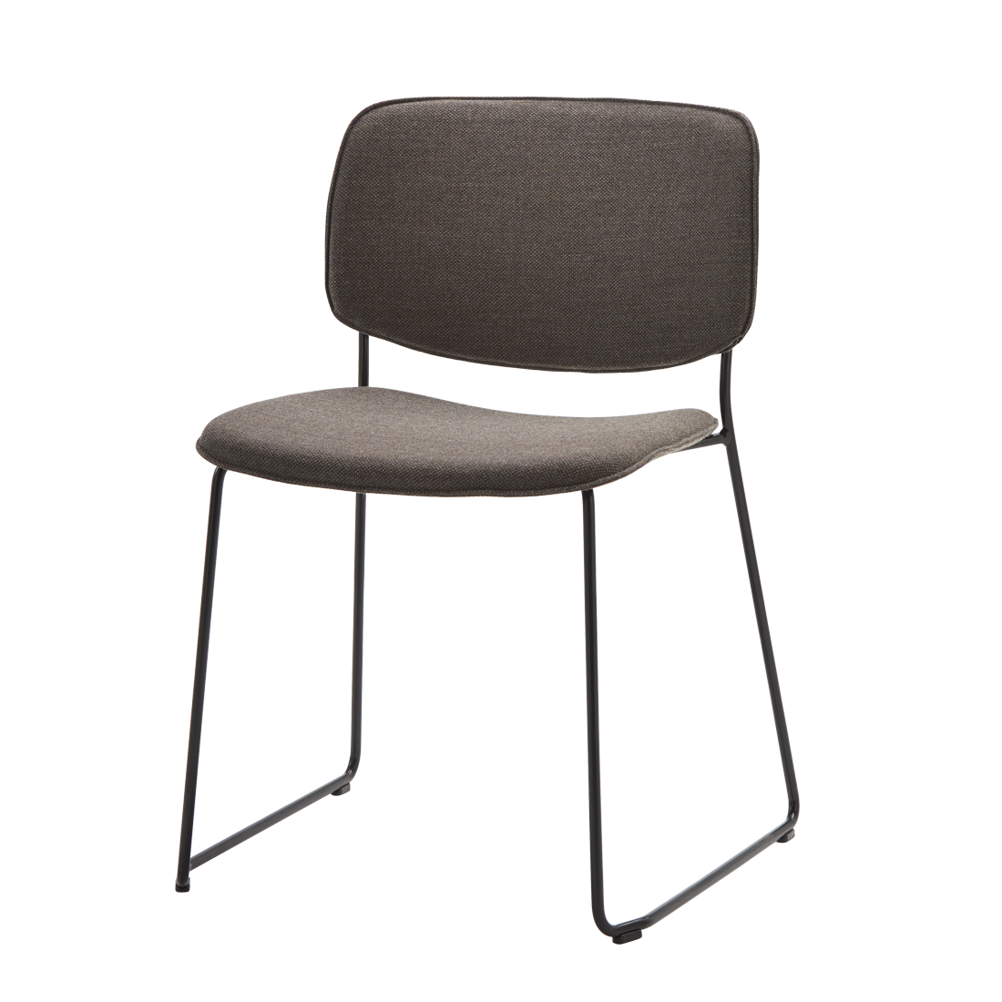 Designed to optimise comfort and functionality, the sleek wooden and upholstered versions complete the versatile ARYN family. A refined design that takes care of the details, the warmth of the wood, the fabrics and the lightness of the structures allow the total adaptation of these chairs to any context or environment, from casual spaces to the most elegant environments. On the image: stackable chair with fully upholstered seat and backrest and steel rod sled base.