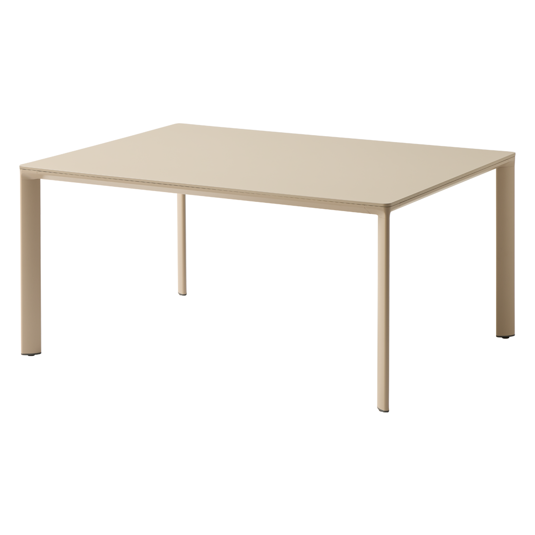En la imagen: mesa con encimera rectangular. El marco estructural y las patas están fabricadas con aluminio extruido. Disponible en tres alturas, 75, 90 y 105cm.