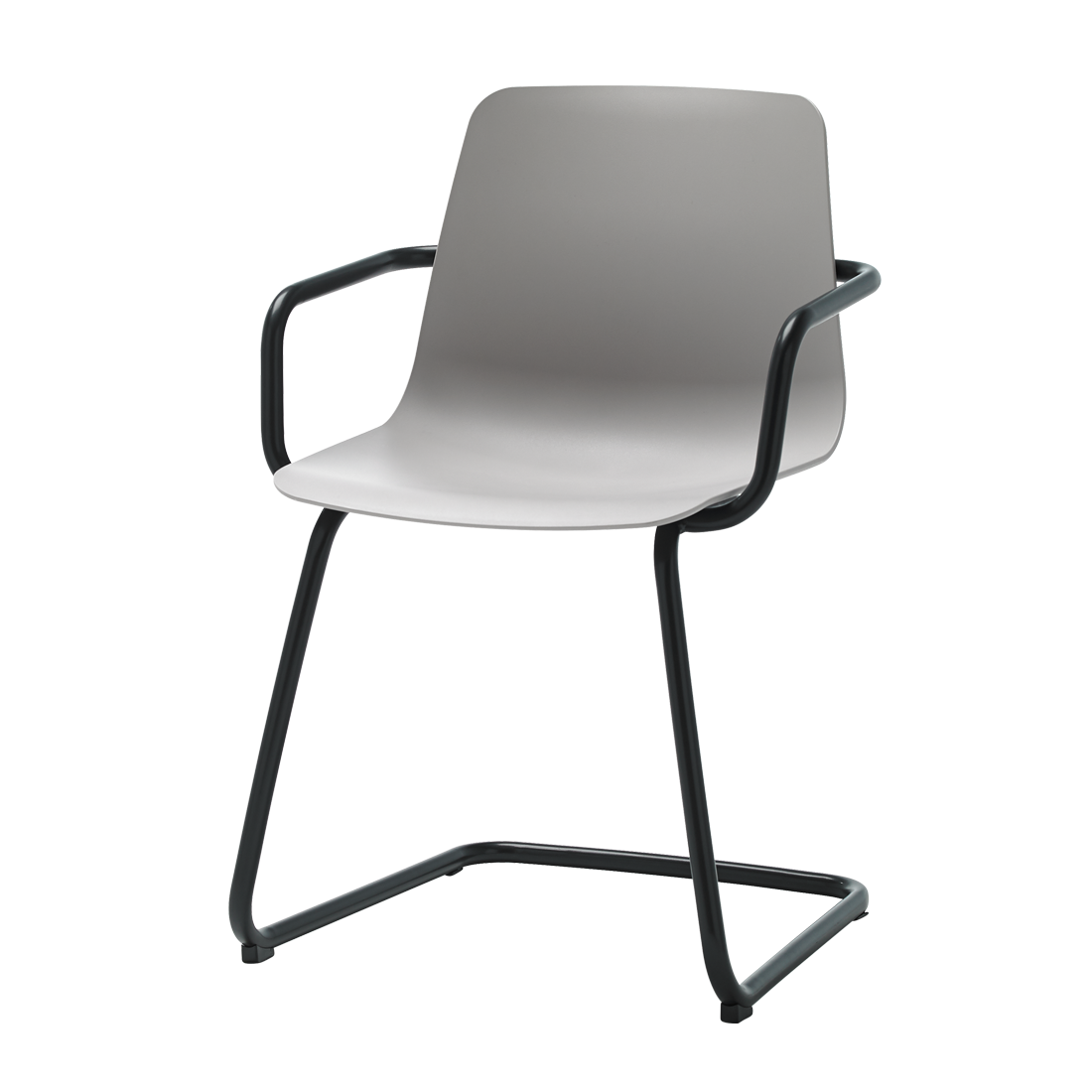 En la imagen: sillón con asiento de polipropileno y base con pie de patín de tubo de acero.