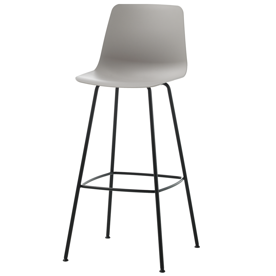 En la imagen: silla alta con carcasa de polipropileno y base de 4 patas de acero.
