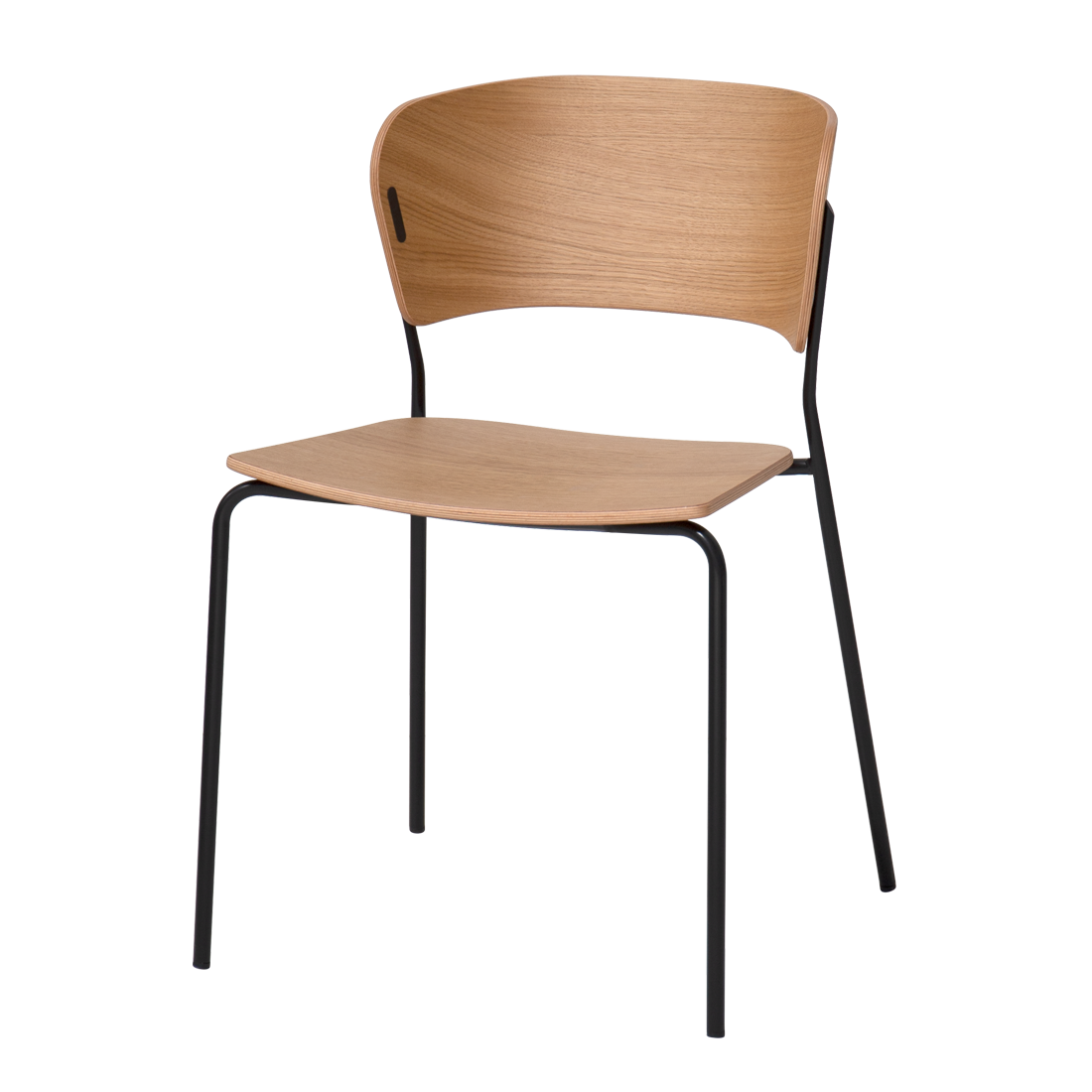 With a timeless and fluid design, ARC is a multipurpose chair with an elengantly curved backrest that offers an optimal comfort and a refined expresion. On the image: chair with 4 leg frame. This version is stackable.