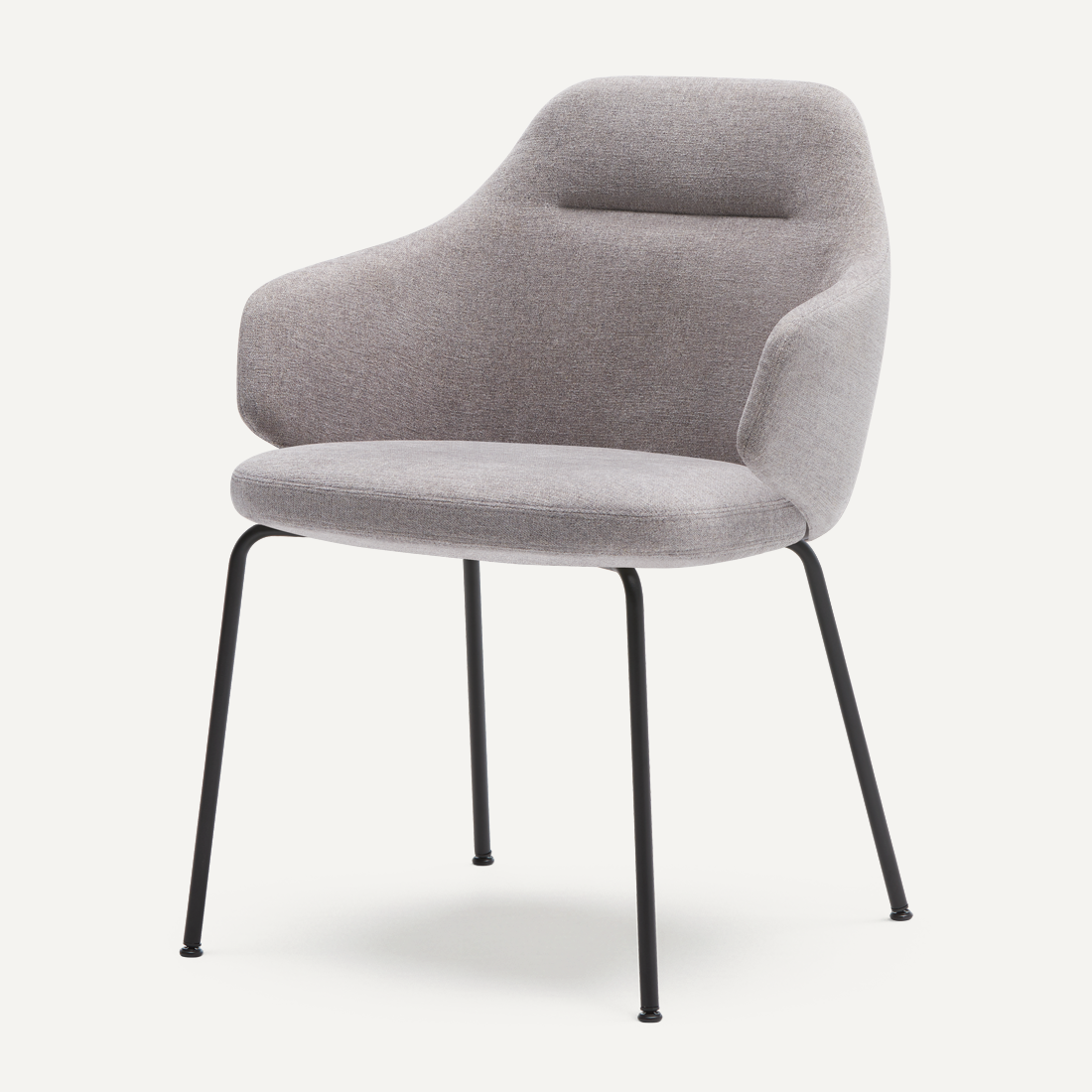 Upholstered armchair with medium backrest and round steel tube 4 leg frame.