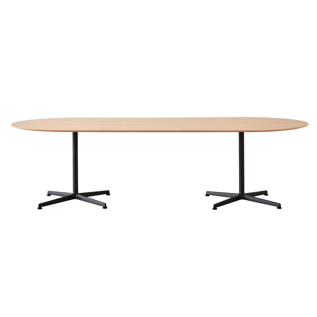 Table of height 75cm with two bases in B00 colour and oval top in oak