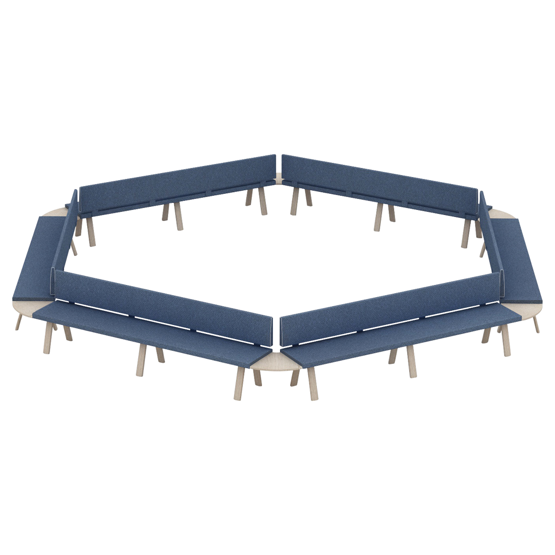 Benches composition with and without backrest using corner top 60º